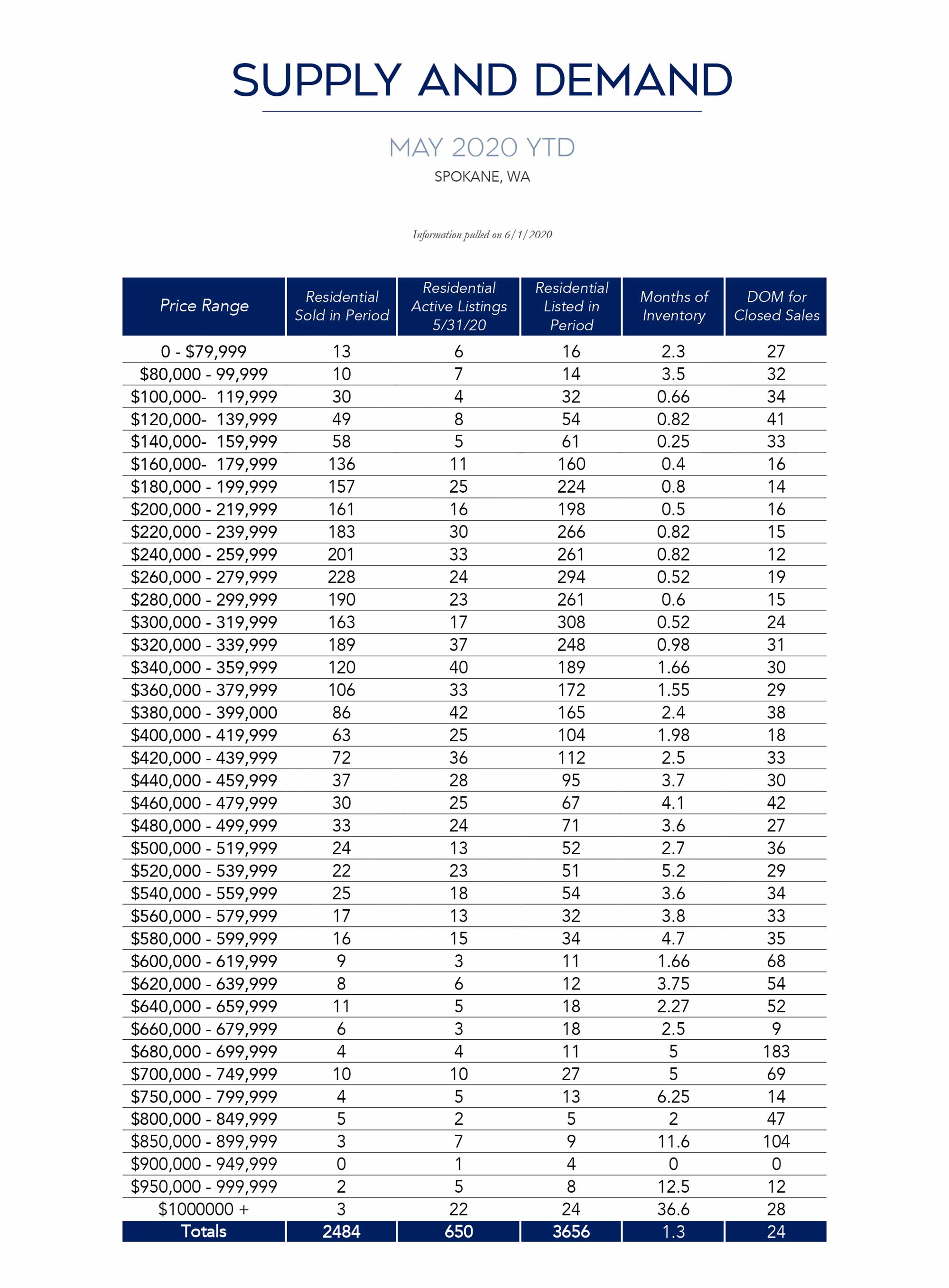 The information in this report is compiled from a report given by the Spokane Association of REALTORS© and to the best of our knowledge is accurate and correct.