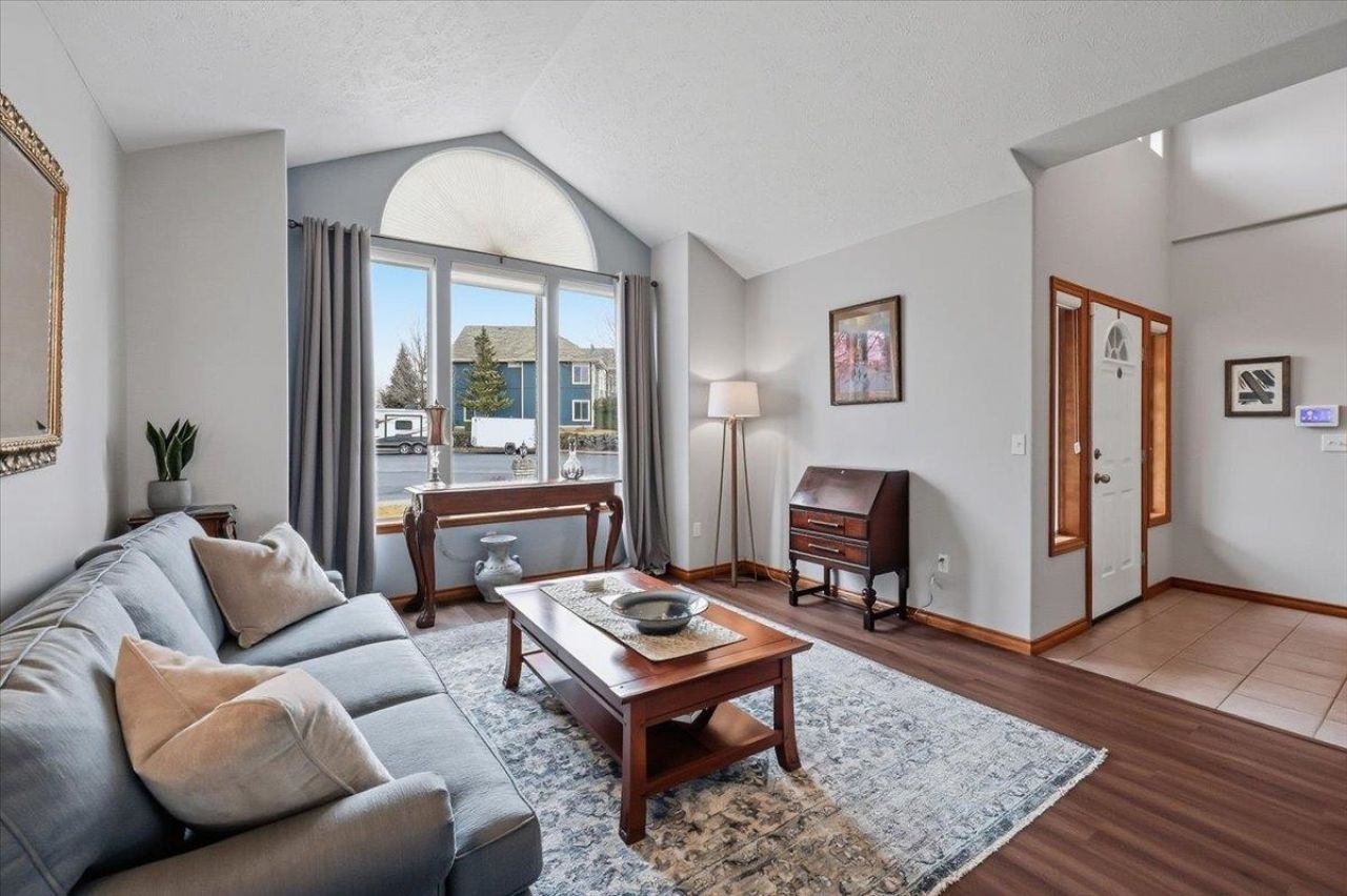 Enjoy breathtaking Spokane River sunsets from this beautifully designed main-floor living home. The primary suite features a 5-piece bath w/ double sinks, soaking tub, separate shower, walk-in closet, and private deck access. A formal living room welcomes guests, with formal dining for gatherings. The expansive great room offers a gourmet kitchen, dining and living areas centered around a gas fireplace, opening to an expansive deck with stunning river views. An additional full bath and main-floor laundry add convenience. The walk-out daylight basement includes a second great room with kitchen, dining & living areas, French doors to a covered patio, additional laundry, three bedrooms and a full bath?ideal for guests or multi-generational living. Situated on 1.48 acres w/gazebo, paver patios, gardens, mature trees & wildlife. Enjoy peace of mind with new 50-year architectural roof (2021) and new HVAC (2025)!