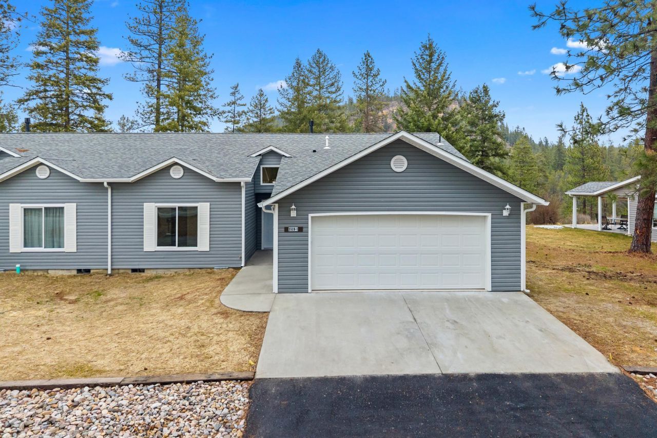 Brand-new condo located next to the Chewelah Golf & Country Club. This 2 bedroom, 2 bathroom home features vaulted ceilings and an upstairs loft ideal for an office or flex space. The open living area includes a gas fireplace, Corian countertops, and brand-new stainless steel appliances. A sliding door leads to a covered porch with private mountain views, perfect for year-round relaxation. The primary bedroom has large bath with tiled shower and personal outdoor slider. Attached 2 car garage. Sale includes this years couples golf pass to the Chewelah Golf & Country Club, which offers a restaurant and pickleball court. Just 5 minutes to town and close to 49° North Ski hill, lakes, and endless outdoor recreation. Move-in ready and perfectly positioned for comfort, convenience and recreation!