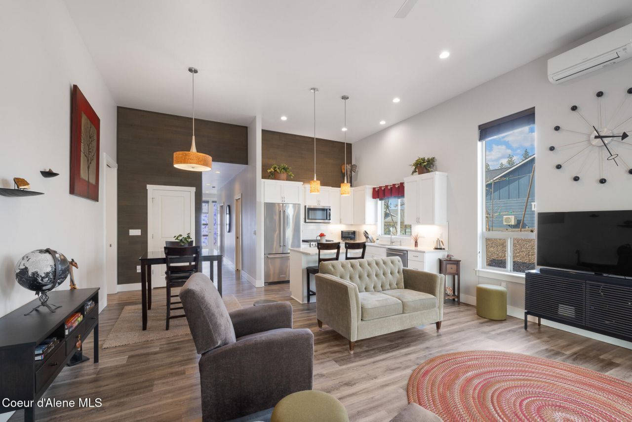 Welcome to The Circuit @ Seltice, one of Coeur d'Alene's premier gated communities!This stylish and energy-efficient LEED Gold home blends contemporary and craftsman design with high-end finishes throughout, including quartz countertops, radiant floor heating, and mini-split cooling units for year-round comfort. Ideally located on one of the community's most desirable lots, this all one-level home offers a thoughtful layout featuring a dedicated office or sitting room, a spacious primary suite with a generous walk-in closet, and a workshop area in the heated garage, which also includes a new insulated garage door for added efficiency, privacy and quiet.This community provides privacy, security, and a welcoming atmosphere, with convenient services included like front snow removal and front landscape maintenance, allowing you to enjoy your home and surroundings with ease, year-round. Also allowing short term rental potential!