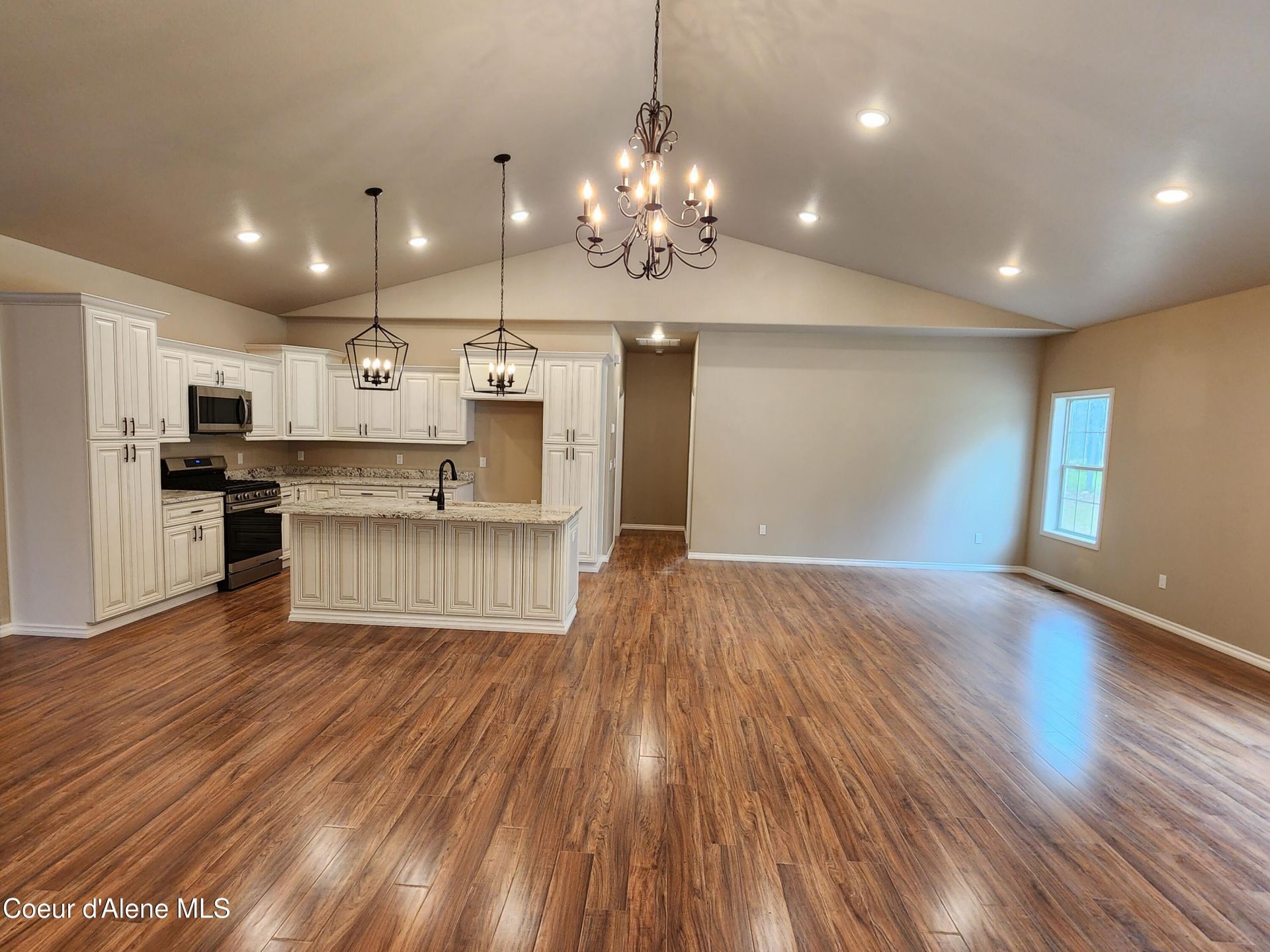 Price Reduced! New Custom Home! Never lived in, SHOPS & RV BUILDINGS ALLOWED: 1,800 Sf. 3 Bedroom 2 bath single level, on a 3/4 acre flat lot some views of Mountain range, easy Hwy access very nice surrounding homes. You will appreciate oversized 3 car garage 32'X26'. Nine Ft. high garage double doors, garage sheet rocked & insulated. Has conditioned crawl space ( warm floors!) Interior features include 9 ft ceiling thru out and vaults in the Kitchen, Dining, Family and Entry areas. Lovely kitchen with raised panel cabinets, granite countertops, Large Island. Appliances include gas range, microwave, dishwasher, & garbage disposal. Laminate wood floors thru out, vinyl windows, high eff. gas furnace & A/C. has a 25'X10' deck off Patio Slider and another 16'X10' Extended Deck with covered roof. Ext. has 8' Smart lap siding, large concrete parking slab, 30 year asphalt shingle 6/12 pitch roof. Check out interior & Exterior Qualities.
