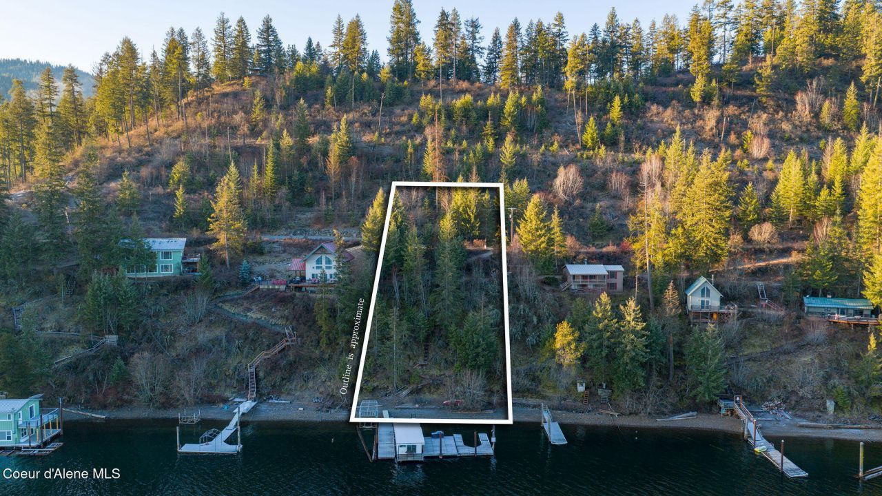 WATERFRONT & STUNNING VIEWS FROM THIS BUILDABLE LAKE COEUR D'ALENE WATERFRONT LOT! Rare opportunity to own 100 feet of prime waterfront on approximately .57 acres (100' WIDE X 250' DEEP), just minutes from downtown Coeur d'Alene. This close-in lakefront location is truly hard to find.Enjoy the property now while planning your dream build. The lot features a custom 48-foot houseboat, dock, and a lovely beach, perfect for entertaining and summer lake days. Power is already in and extended to the dock, with stairs from the road to the beach for access. A composting toilet is conveniently located at the top. Watch the eagles and fish for Kokanee right in front of your property!Whether you arrive by car or boat in from nearby Higgins Point, this exceptional Lake Coeur d'Alene property offers unmatched convenience, privacy, and iconic North Idaho beauty. CLOSE-IN WATERFRONT LIKE THIS IS RARE.....